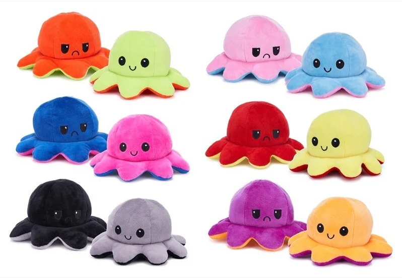 Dieser hochwertige umkehrbare Oktopus ist das perfekte Kuscheltier für Kinder und Erwachsene, die weiche und kuschelige Spielzeuge lieben. Der Oktopus ist umkehrbar, so dass Sie wählen können, welche Emotion Sie zeigen möchten. Der Oktopus ist in 6 verschiedenen Farben erhältlich. Das Kuscheltier ist 19 cm groß und aus weichem Material von hoher Qualität hergestellt.