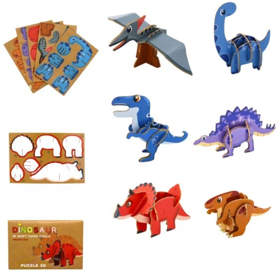 3D-Puzzle 12x8cm Dino 6sort. -FSC