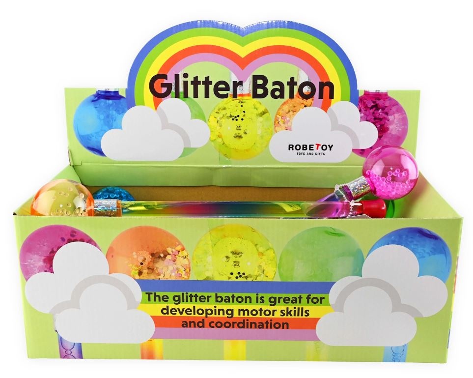 Glitter wand 30cm with pearls assorted 12 in display
