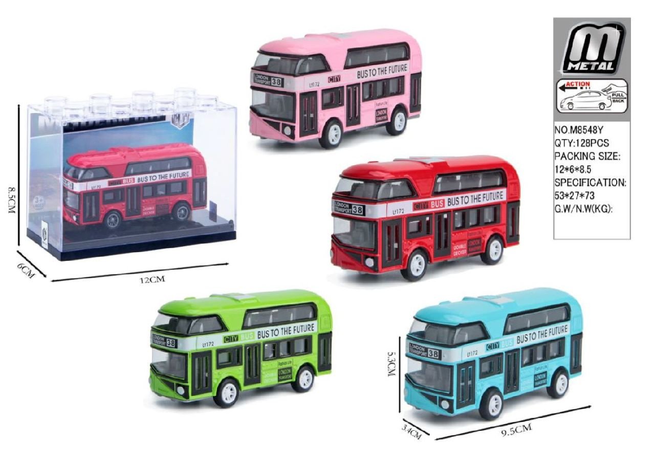 Die Cast Dubbel Dekker 10x4x6cm ass. kleuren stapelbaar