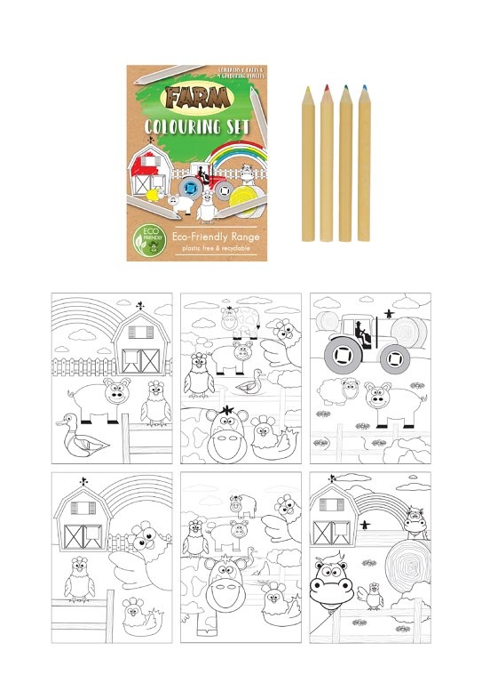 Ontdek creatieve duurzaamheid met onze Boerderij Kleurset A6 (14x10 cm). Deze set bevat kleurplaten van boerderijdieren, duurzame kleurpotloden. Gedrukt op gerecycled papier, stimuleert het de artistieke ontwikkeling van kinderen op een verantwoorde manier. Het compacte formaat maakt het ideaal voor onderweg.